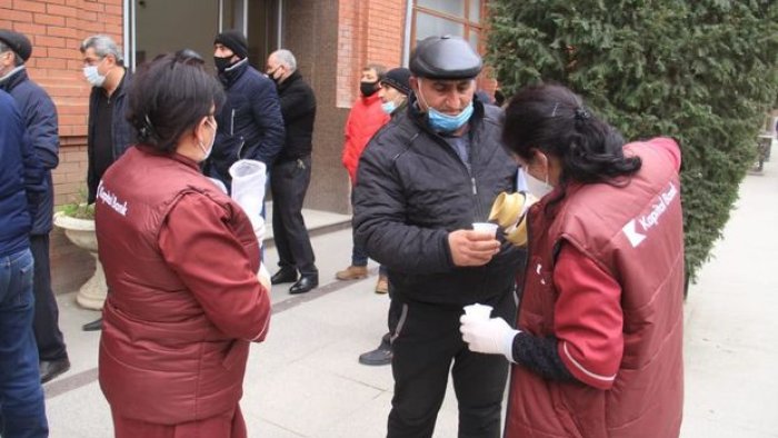 Havaların soyuq olmasını nəzərə alan Gəncə Şəhər İcra Hakimiyyətinin və Kapital Bank Gəncə filialının rəhbərliyinin təşəbbüsü ilə növbədə gözləyən sakinlər oturacaq və isti çayla təmin ediliblər.