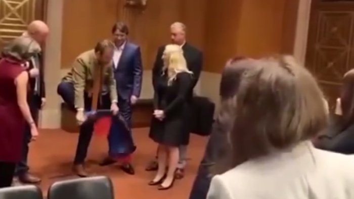 ABŞ Konqresində Ukraynadan gələn nümayəndə heyəti ayaqqabılarını qondarma “Donetsk Xalq Respublikası”nın bayrağı ilə siliblər.