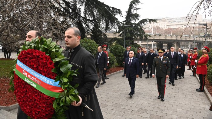 Bizim.Media xəbər verir ki, Ə.Əsədov Tbilisidə Qəhrəmanlar abidəsini ziyarət edib.