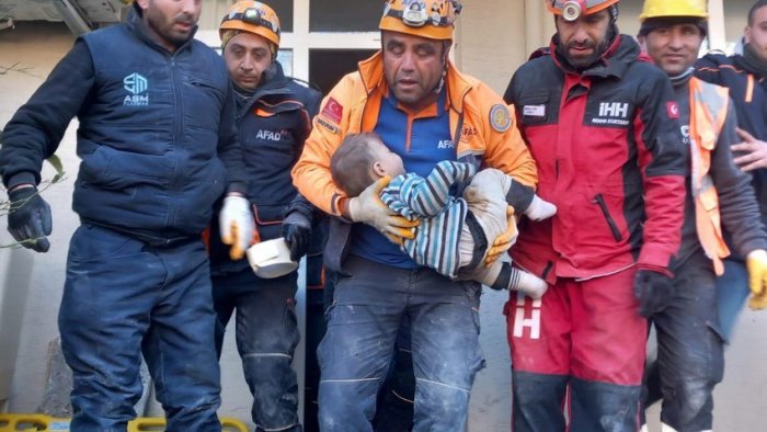 Türkiyənin Hatay bölgəsində zəlzələ nəticəsində dağılan binanın altından 78 saatdan sonra 2 yaşlı Mehmet Tatar adlı körpə sağ çıxarılıb.