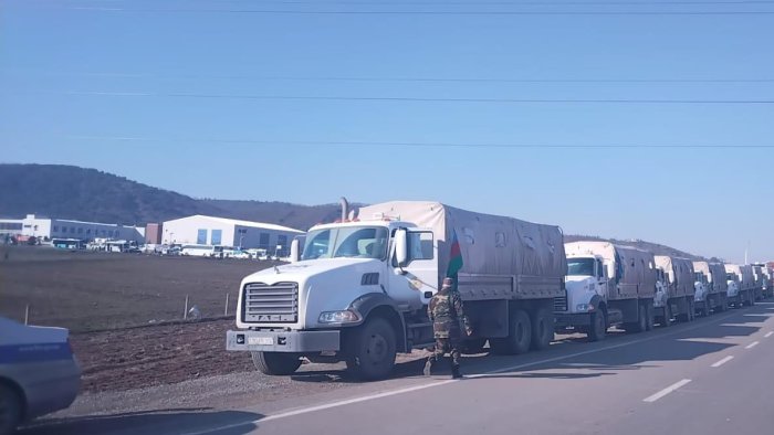 FHN-in polkovniki Şəmsəddin Əmrahov bildirib ki, humanitar yardım paketinə 830 dəst çadır, 279 ədəd soba daxildir.