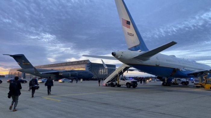 Jurnalist bildirib ki, vitse-prezidentin mavi-ağ rəngli təyyarəsi xarab olub, odur ki, Kamala Harris Almaniyadan ABŞ-yə C-17 dəstək təyyarəsi ilə qayıdacaq.