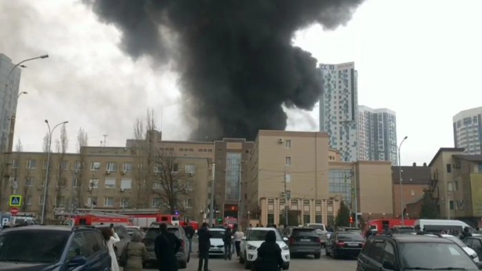 Rostov-na-Donu şəhərində Rusiya Federal Təhlükəsizlik Xidmətinin Sərhəd İdarəsinin binası yanır.