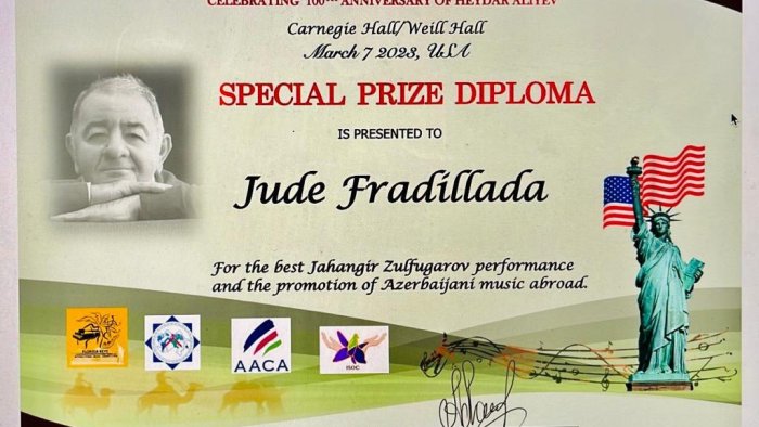 Jude Fradillada Cahangir Zülfüqarovun əsərinin ən yaxşı ifası və Azərbaycan musiqisinin xaricdə tanınmasına görə xüsusi mükafat-dimplomla təltif olunub.