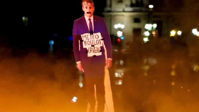 Etirazçılar Parisdə Makronun müqəvvasını yandırıblar.