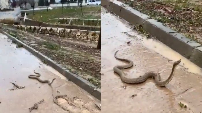 Sel fəlakətini yaşayan Şanlıurfanın küçələrində seldən sonra ilanlar peyda olub.