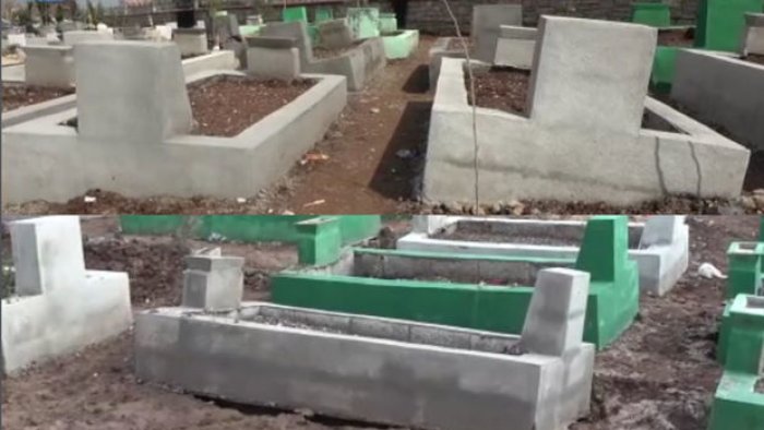 Zəlzələdə həyatını itirən insanların məzarları uçub, gölməçələr əmələ gəlib.