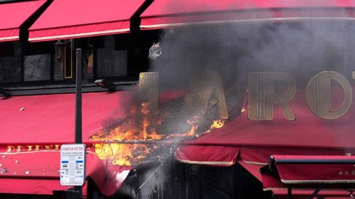 Məlumata görə, aksiya iştirakçıları Parisin Montparnas bulvarındakı La Rotonde restoranını yandırıblar. Yanğın müəssisənin eyvanından yayılmağa başlayıb.