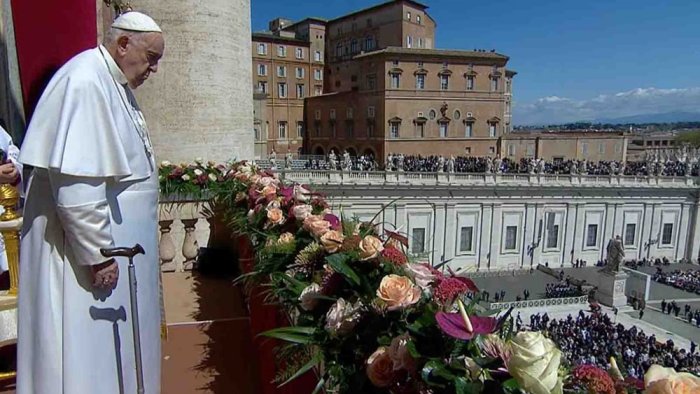 Bizim.Media xəbər verir ki, xristian aləminin ən ali bayramı – Pasxa bayramı günündə Vatikanın Müqəddəs Pyotr meydanında katoliklərin ruhani lideri Papa Fransisk “Papamobile” adlı avtomobili ilə meydana toplaşanları salamlayıb. Roma Katolik Kilsəsinin rəhbəri ənənəvi “Urbi et Orbi” (“Romaya və dünyaya”) bayram xeyir-duasını oxuyub, çıxış edib və Pasxa təbrikini çatdırıb.