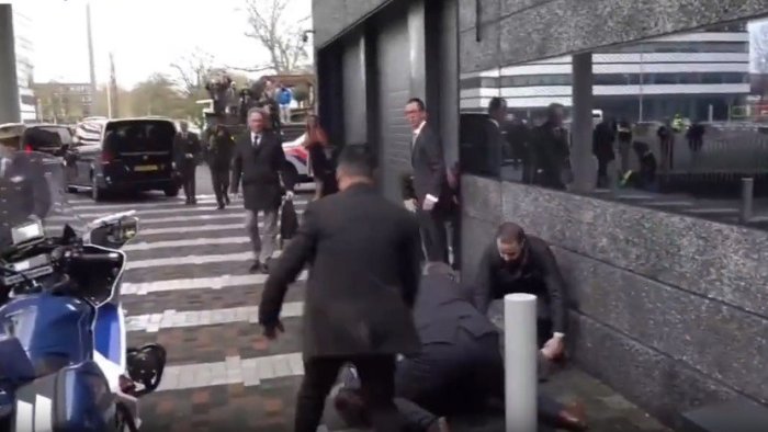Bizim.Media "France24"ə istinadən xəbər verir ki, etirazçılardan biri ona hücum etmək istəyib.