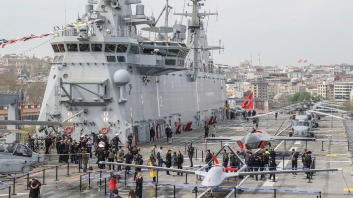 İstanbulun Sarayburnu Limanında ziyarətçilərin üzünə açılan dünyada pilotsuz uçuş aparatları (PUA) daşımaq imkanı olan ilk hərbi desant gəmisi və bütün Türkiyənin fəxri “TCG Anadolu” ilk gündən böyük maraqla qarşılanıb.