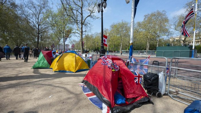 Böyük Britaniyada Kral III Karlın mayın 6-da keçiriləcək tacqoyma mərasimini izləmək üçün bir çox insan artıq indidən küçələrdə çadır qurub.