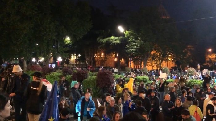 Bizim.Media xəbər verir ki, etirazçılar Gürcüstanda parlamenti binasının qarşısına toplaşaraq hakimiyyət nümayəndələrinə iki tələb irəli sürürlər: