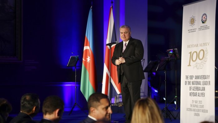 Azərbaycanın Böyük Britaniyadakı səfiri Elin Süleymanov çıxış edərək Ümummilli Lider Heydər Əliyevin Azərbaycanın dünyada mövqeyinin möhkəmlədirilməsi, dövlətlərarası əlaqələrin genişləndirilməsi istiqamətindəki müstəsna xidmətlərindən danışıb.