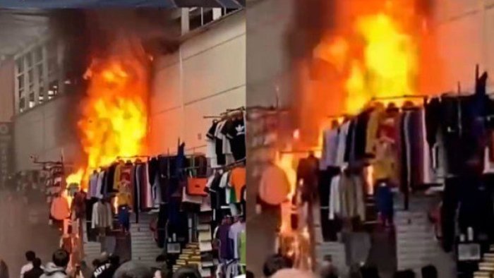 Məlumata görə, yanğın səkkizinci sırada yerləşən alış-veriş pavilyonlarını bürüyüb.