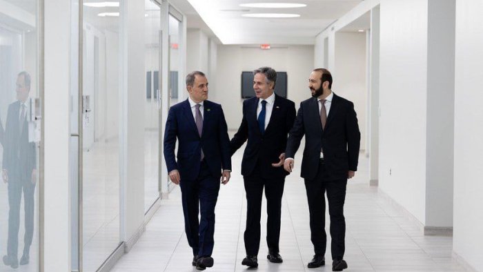 ABŞ dövlət katibi Entoni Blinkenin Azərbaycan və Ermənistanın xarici işlər nazirləri Ceyhun Bayramov və Ararat Mirzoyanla görüşü başlayıb.