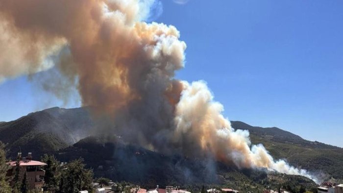 Bizim.Media TRT Haber-ə istinadən xəbər verir ki, yanğınsöndürən qruplarl havadan və qurudan müdaxilə edərək alovları söndürməyə çalışırlar.