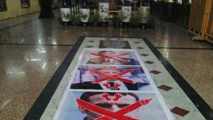 İranda ticarət mərkəzlərinin birində döşəməyə Makronun şəkili əks olunmuş xalçalar atılıb.