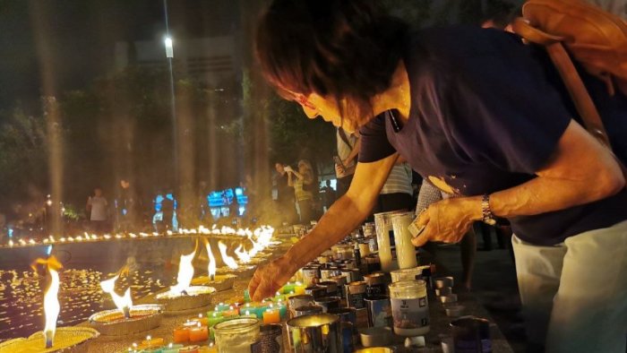 Bizim.Media xəbər verir ki, Təl-Əvivin mərkəzi meydanlarından birində minlərlə insan həlak olanların xatirəsinə şamlar yandırır.