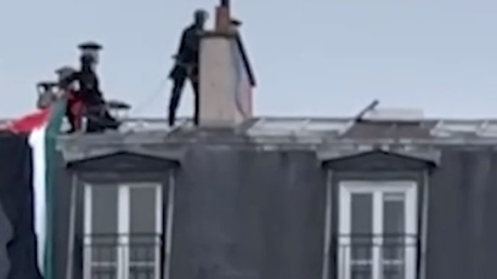 Bizim.Media xəbər verir ki, bayraq Fransa polisi tərəfindən damın üstündən götürülüb.