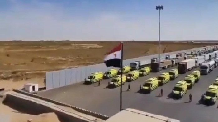 Qəzza zolağına humanitar yardım aparan Misir maşınları Rəfah sərhəd keçid məntəqəsinin qarşısında gözləyir.
