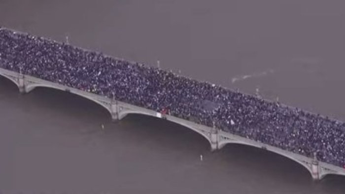 Bizim.Media xəbər verir ki, Londonda minlərlə şəxs fələstinlilərə dəstək üçün kütləvi yürüş keçirirlər.