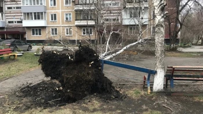 Güclü külək evlərin damlarını, dirəkləri, ağacları və avtomobilləri aşırıb. Yıxılan ağaclar Sorokino-Biysk yolunu tamamilə bağlayıb.