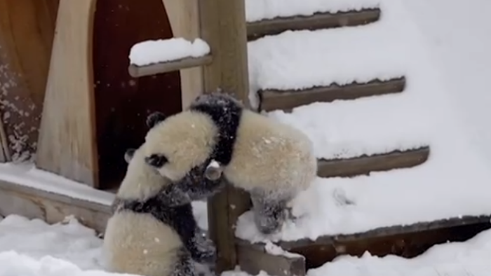 Çində yeni doğulan panda balaları ilk dəfə qarla tanış olublar.