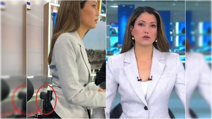 İsrailin "14 Channel" televiziyasının aparıcısı canlı efirə tapança ilə çıxıb.