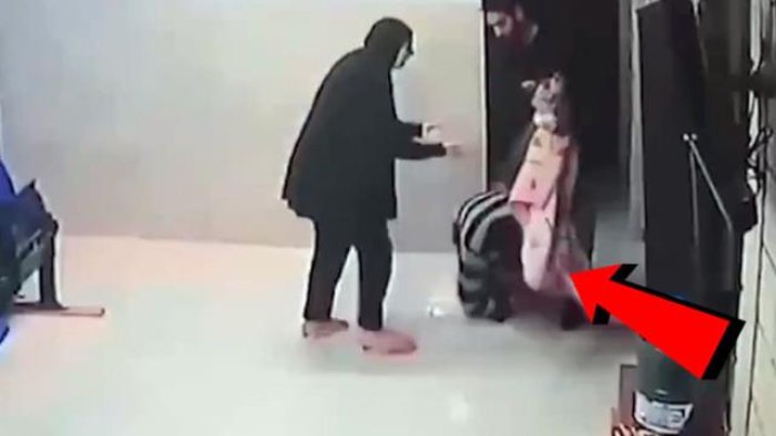 Uşaq xilas olduqdan sonra sevincdən həkimin ayaqlarına yıxılan atanın görüntüləri təhlükəsizlik kameralarına əks olunub.