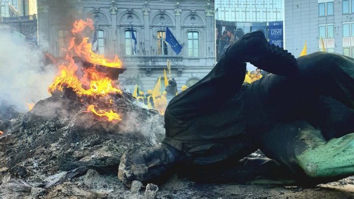 Brüsseldə etiraz aksiyası keçirən fermerlər 19-cu əsrə aid heykəli söküblər.