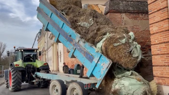 Bundan əlavə narazı fermerlər peyin qalağının üzərinə Avropa İttifaqı (Aİ) bayraqlarını atıblar.