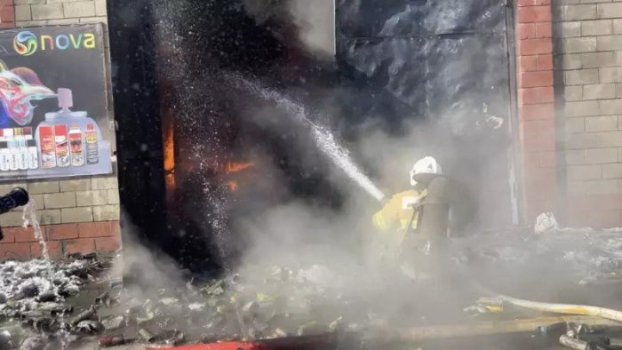 Qazaxıstanın Almatı şəhərində anbarda böyük yanğın baş verib.