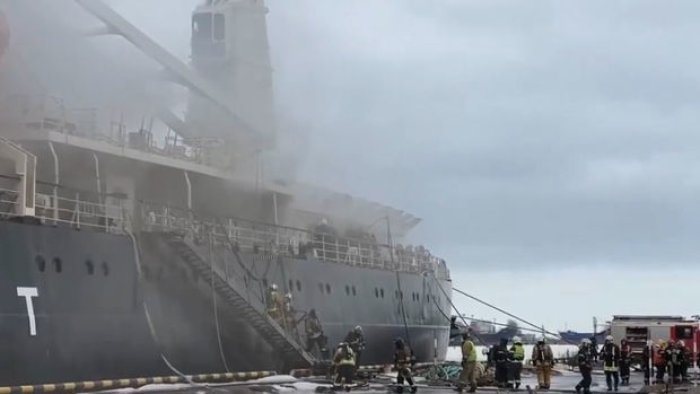 Məlumata görə, yanğın hazırda istismarda olmayan gəminin birinci göyərtəsindəki anbar otağında başlayıb.