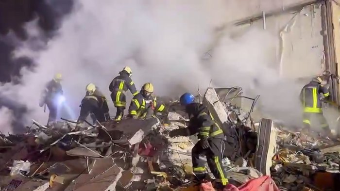 Hücum nəticəsində çoxmərtəbəli yaşayış binasının bir hissəsi dağılıb.