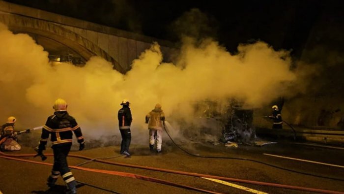 İstanbul-İzmir magistral yolunda hərəkət edən sərnişin avtobusu naməlum səbəbdən Bursa vilayətindəki Orhangazi tunelinin girişində yanıb.