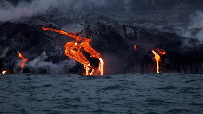 Məlumata görə, artıq iki aydır ki, davam edən vulkan püskürməsi nəticəsində lava axınları yaranan delta boyunca enərək dənizə axmağa davam edir.