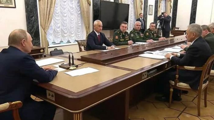 Rusiya prezidenti Vladimir Putin keçmiş müdafiə naziri Sergey Şoyqu, yeni nazir Andrey Belousov, Baş Qərargah rəisi Valeri Gerasimov, eləcə də hərbi dairələrin komandirlərinin iştirak etdiyi görüşdə Belousovun müdafiə naziri təyin edilməsinin səbəbini açıqlayıb və bildirib ki, bu, hərbiyə ayrılan xərclərin artması ilə bağlıdır.