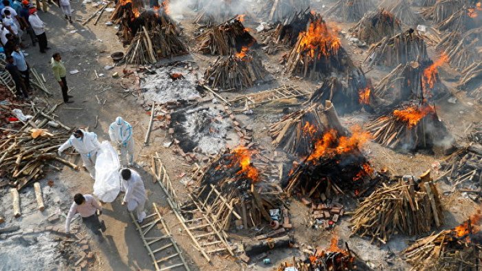 Hindistanda koronavirüsdən hər gün minlərlə insan dünyasını dəyişir. Mərhumların cəsədləri küçə krematoriyalarında kütləvi şəkildə yandırılır.