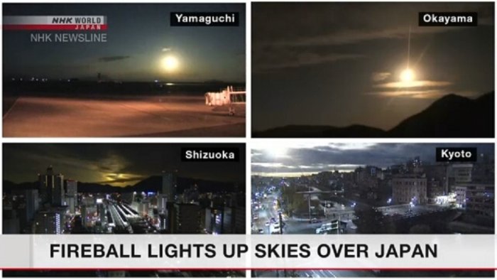 Bizim.Media xəbər verir ki, NHK telekanalının kameraları yerli vaxtla gecə saat 1:34 dəqiqədə Mie, Aiçi prefekturalarında və digər yerlərdə odlu dairə qeydə alıb. Həmin kadrlarda meteorun bir neçə saniyə ərzində Yerə necə yaxınlaşdığı və sonra əmələ gələn güclü işıq dairəsi aydın görünür.