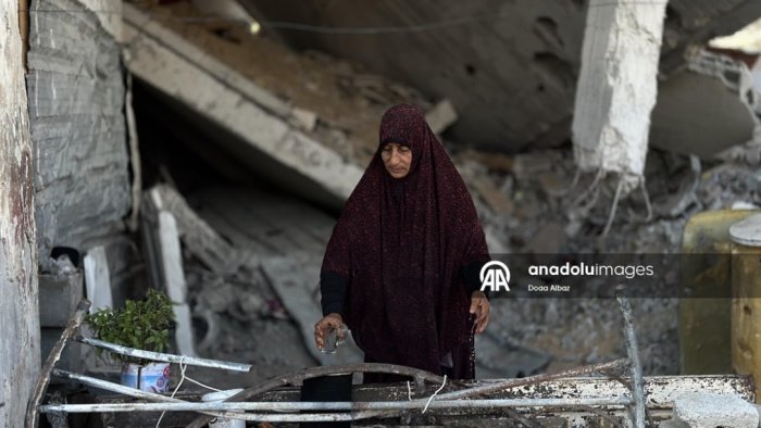 Qəzzada 70-ə yaxın yaxınını itirən Fatma dağıdılmış məhəlləsində yaşayır.