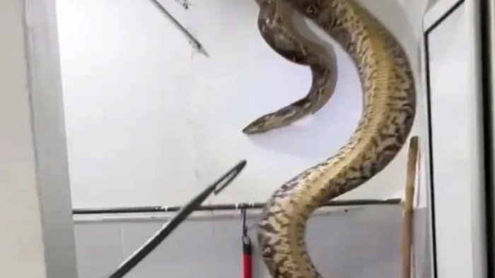 Belə ki, 15 yaşlı qız məktəbdən qayıdanda tualetin tavanının zədələndiyini görüb və bundan sonra ilanı aşkar edib.