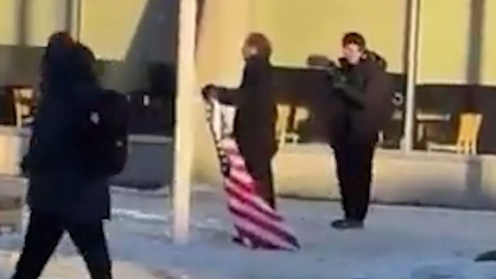 Məlumatda deyilir ki, ətrafdakı insanlar həmin şəxsə ABŞ bayrağını qaldırmağa mane olublar və onu saxlayıblar.