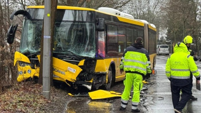 Bizim.Media “Tagesspiegel” qəzetinə istinadla xəbər verir ki, avtobus əks istiqamətdən hərəkət edən minik avtomobili ilə toqquşduqdan sona yoldan çıxaraq ağaca çırpılıb.