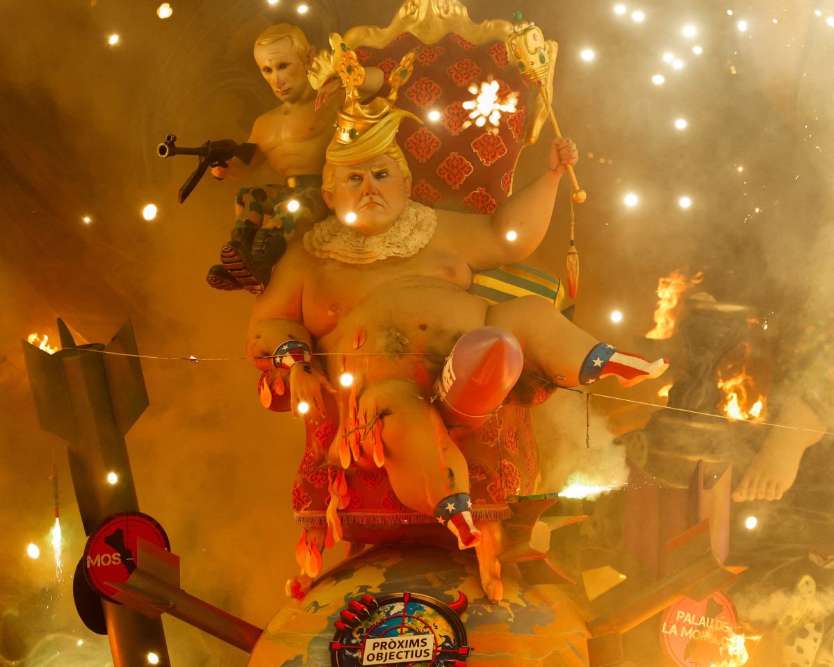 İspaniyanın Valensiya şəhərində keçirilən və satirik heykəllərin nümayiş olunduğu Fallas festivalının son günündə ABŞ prezidenti Donald Tramp və Rusiya prezidenti Vladimir Putini təsvir edən heykəl yandırılıb.