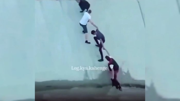 6 il əvvəl əl-ələ verib iti xilas edənlərə insanlıq rəmzi olaraq heykəl qoyulub.