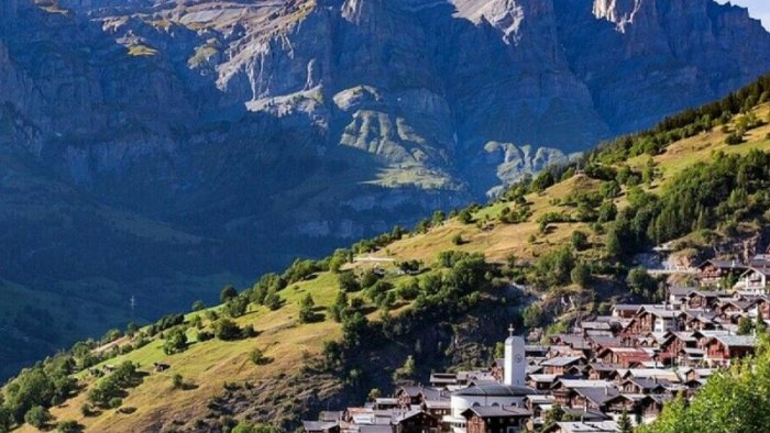 Bu, əhalisinin azalmasından əziyyət çəkən İsveçrə Alp dağlarında yerləşən mənzərəli Albinen kəndidir.