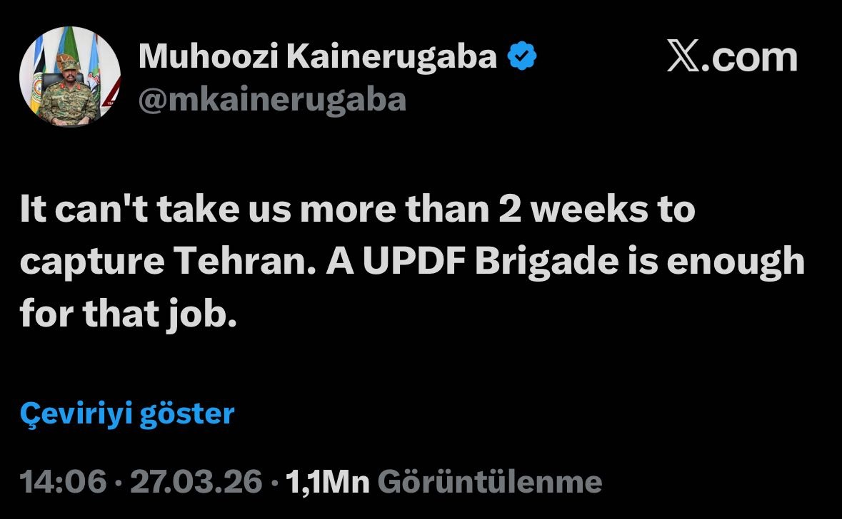 Bizim.Media xəbər verir ki, bu sözləri Uqanda ordusunun komandiri Muhuzi Kayneruqaba sosial media hesabında yazıb.