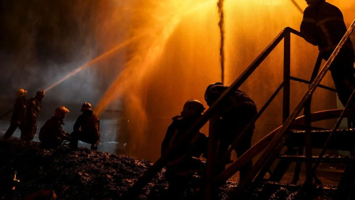 Kiyevin Borşaqovka rayonunda iki partlayış baş verib, bundan sonra ərazidə yanğın başlayıb.
