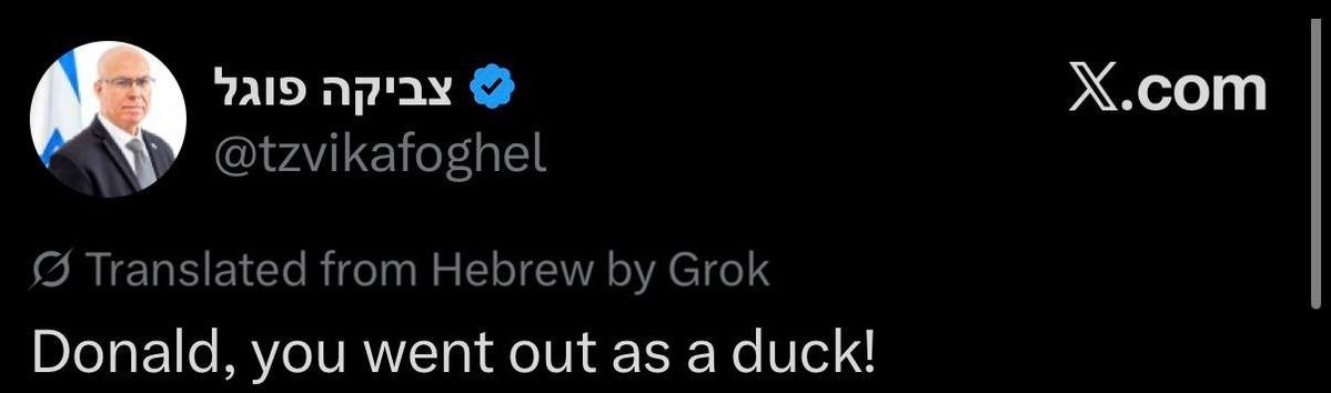 İsrailin Milli Təhlükəsizlik Komitəsinin rəhbəri Tsvika Fogel X sosial səhifəsində ABŞ Prezidenti Donald Trampın ünvanına sərt ifadə işlədib. Bu, İranla iki həftəlik atəşkəsin əldə olunması ilə bağlı xəbərlərdən sonra baş verib.